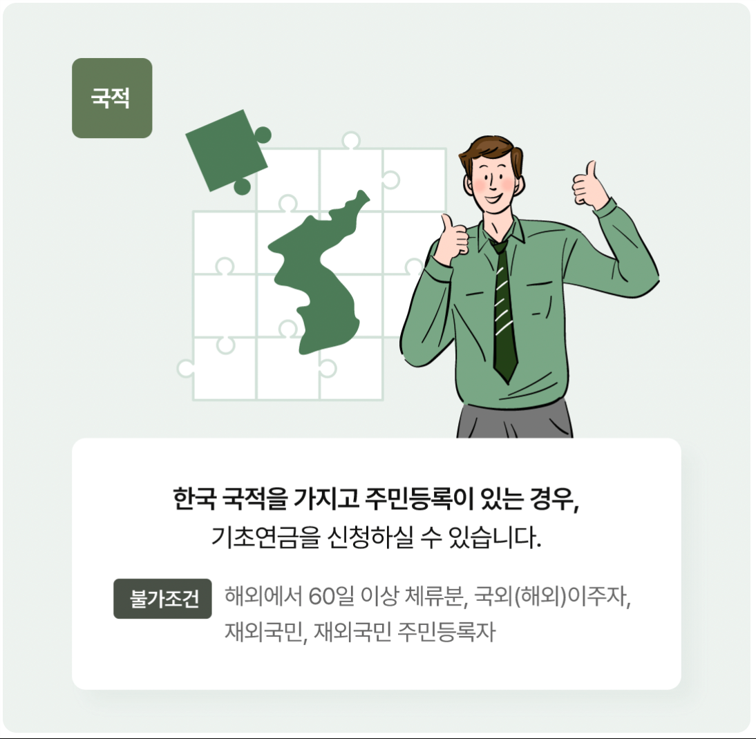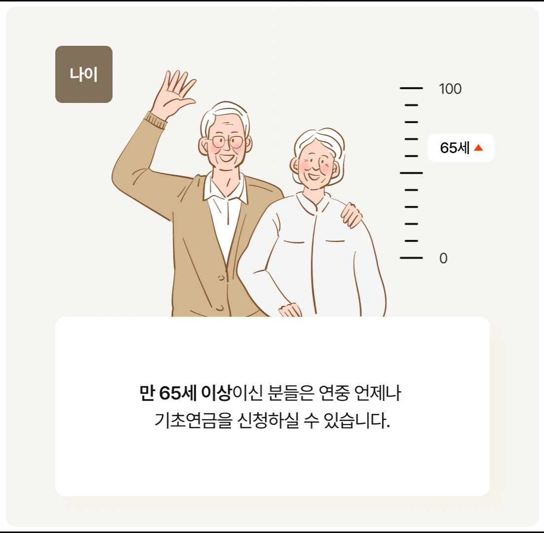 - 기본조건 : 대한민국 연령 65세 이상, 주민등록증 국내주소