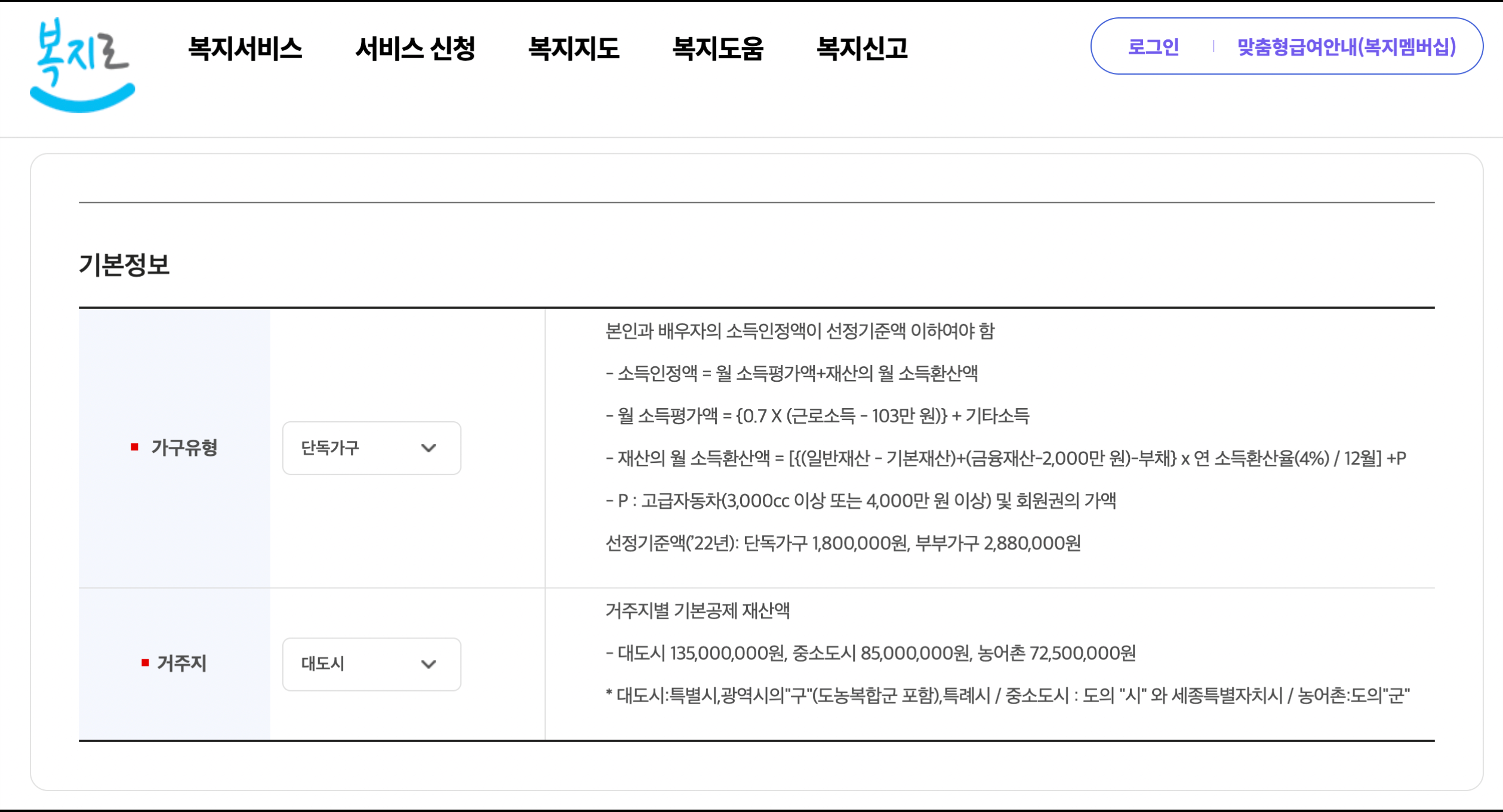 - 월소득인정액 202만원 이하(단독세대)