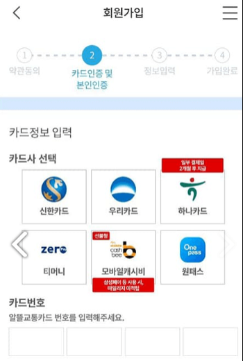 자신이 가진 카드 회사를 선택하고 알뜰 교통 카드 번호를 입력하시면 절차가 끝이 납니다.