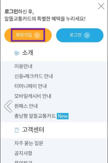 1. 알뜰 교통 카드 마일리지 홈페이지에 액세스 >>카드 신청