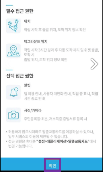 Play 스토어을 이용한다면 앱을 다운로드 받을 수 있습니다. 알뜰 교통 카드 앱을 다운로드하여 설치를 해주시고 필수 접근권한을 부여 해 주세요.