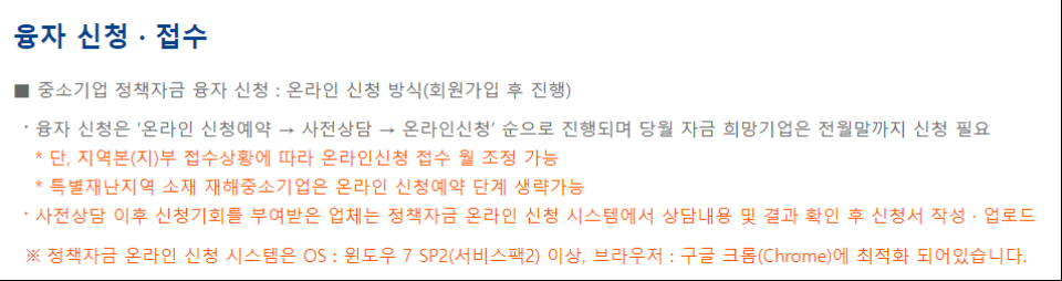 - 대출 한도는 연 1억 이내로 가능 (제조업/지역 특화 주력 산업은 2억 이내로 제한)