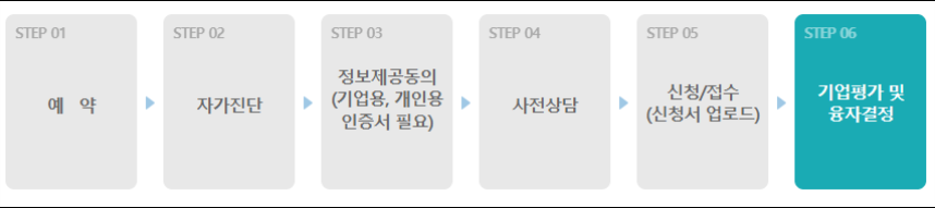 - 접수를 한뒤에 현장 실태 조사 및 온라인 대출 신청을 한다면 기업에 대한 평가 결과 일정 평가 등급 그리고 일정 기준 이상 기업 대상으로 대출할지 여부 결정